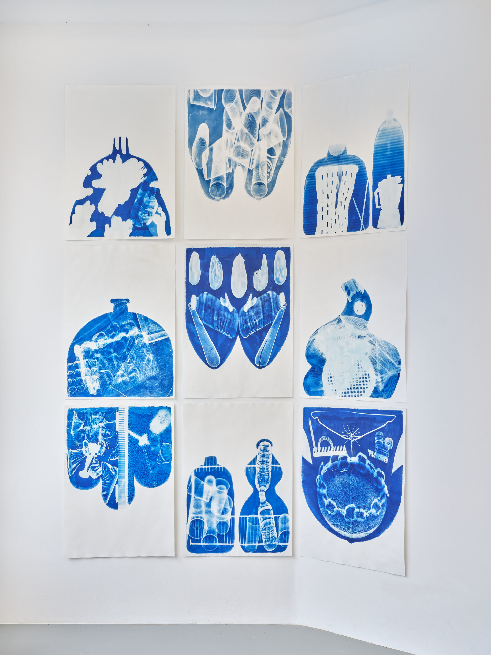 Fotogramm, Cyanotypie auf Aquarellpapier